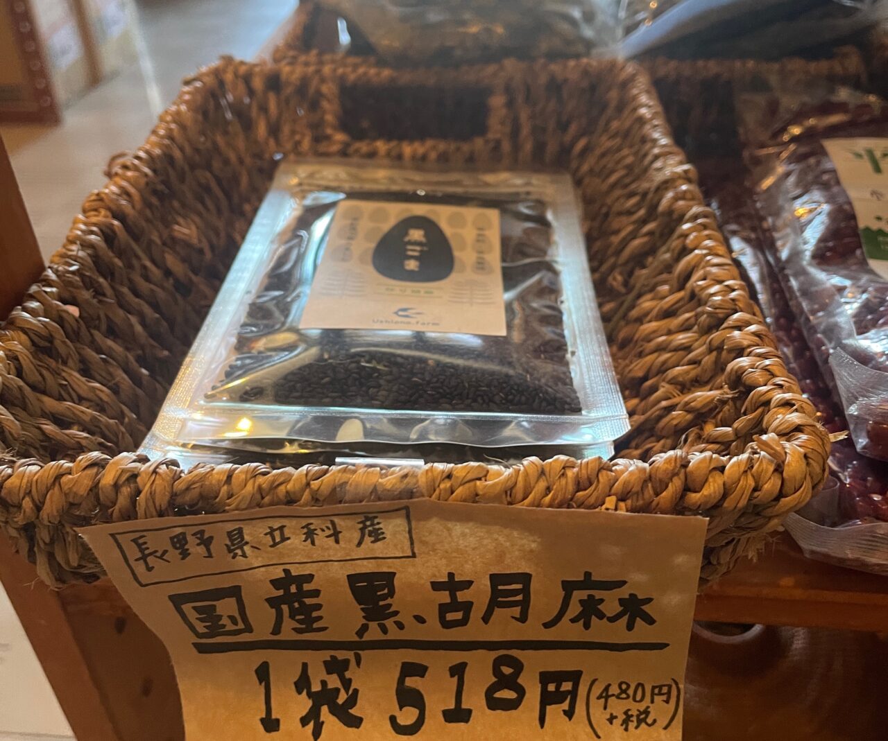 その中に長野県立科産の黒胡麻がありました。店主の田村さんに教えてもらったのですが、日本人のごまの消費量は99%以上輸入で国産の割合はわずか0.1%未満と極めて少なく、ごまの栽培は手間がかかるので労力に対して収益が合わず、どんどん国内生産量は低くなっているとのことです。どんどん貴重な存在になっている国産のごま!