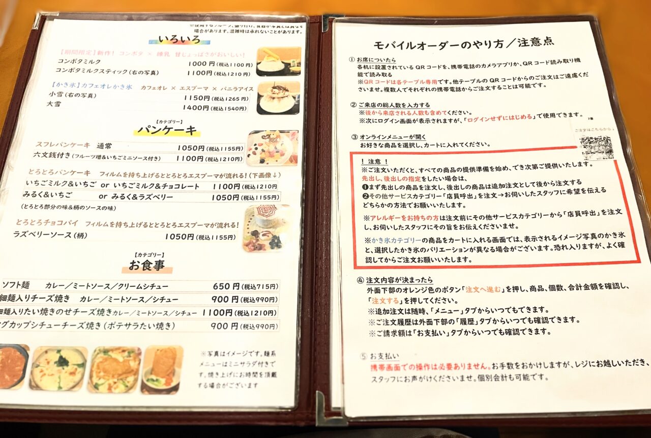 注文はモバイルオーダー形式で携帯電話でQRコードを読み込んで入力します。お水を持ってきた店員さんがわからなければ聞いてくださいねとお声がけくださいました。
