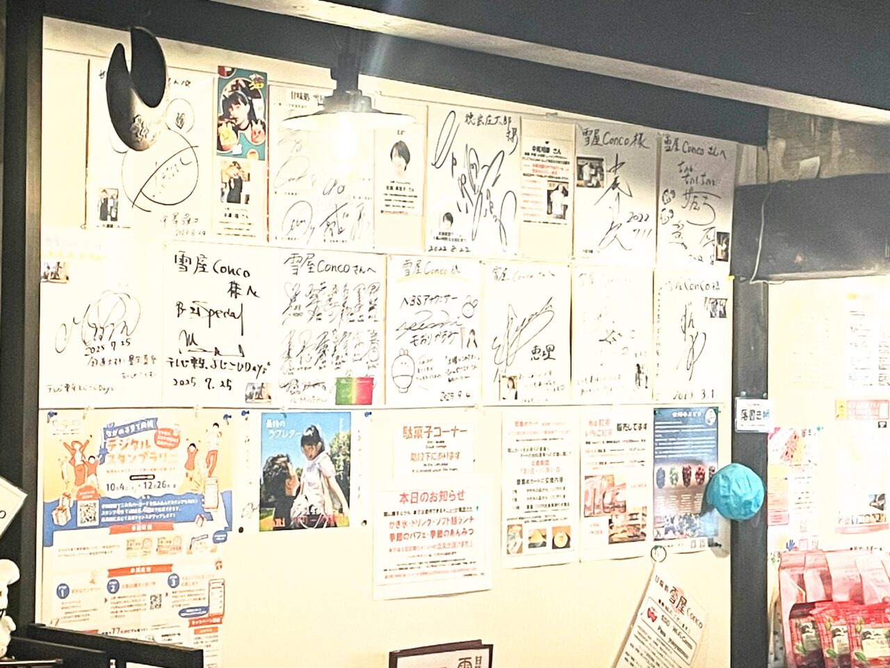 壁には有名人のサインがいっぱいでした。アナウンサーや芸人さん、女優の吉瀬美智子さんや俳優の中尾明慶さんのサインもありました。