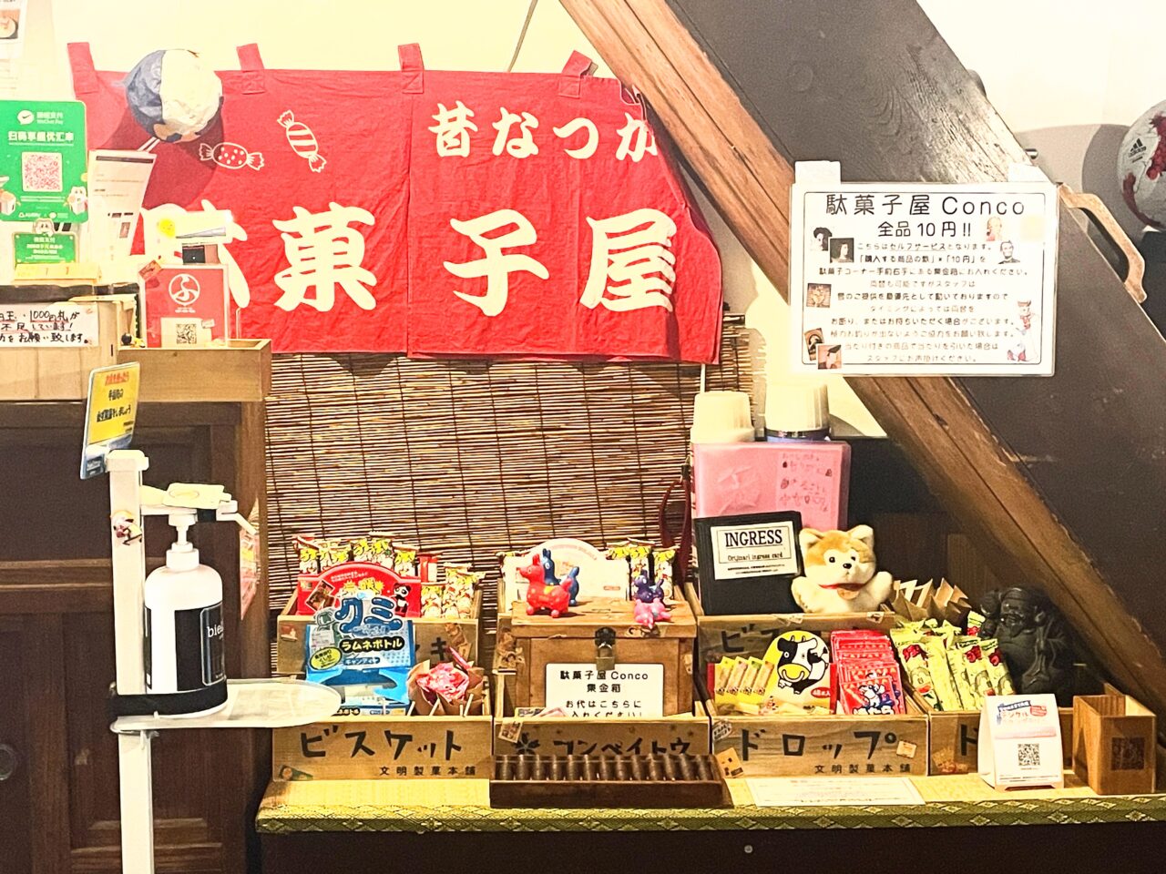 店内に駄菓子コーナーがあります。店内を見て回るのも色々あって楽しいです。雪屋Concoは上田駅「お城口」を出て、天神商店街を約100m直進した右手側に小さな古民家風の店舗があります。駅からも近いので行かれてみてはいかがでしょうか。