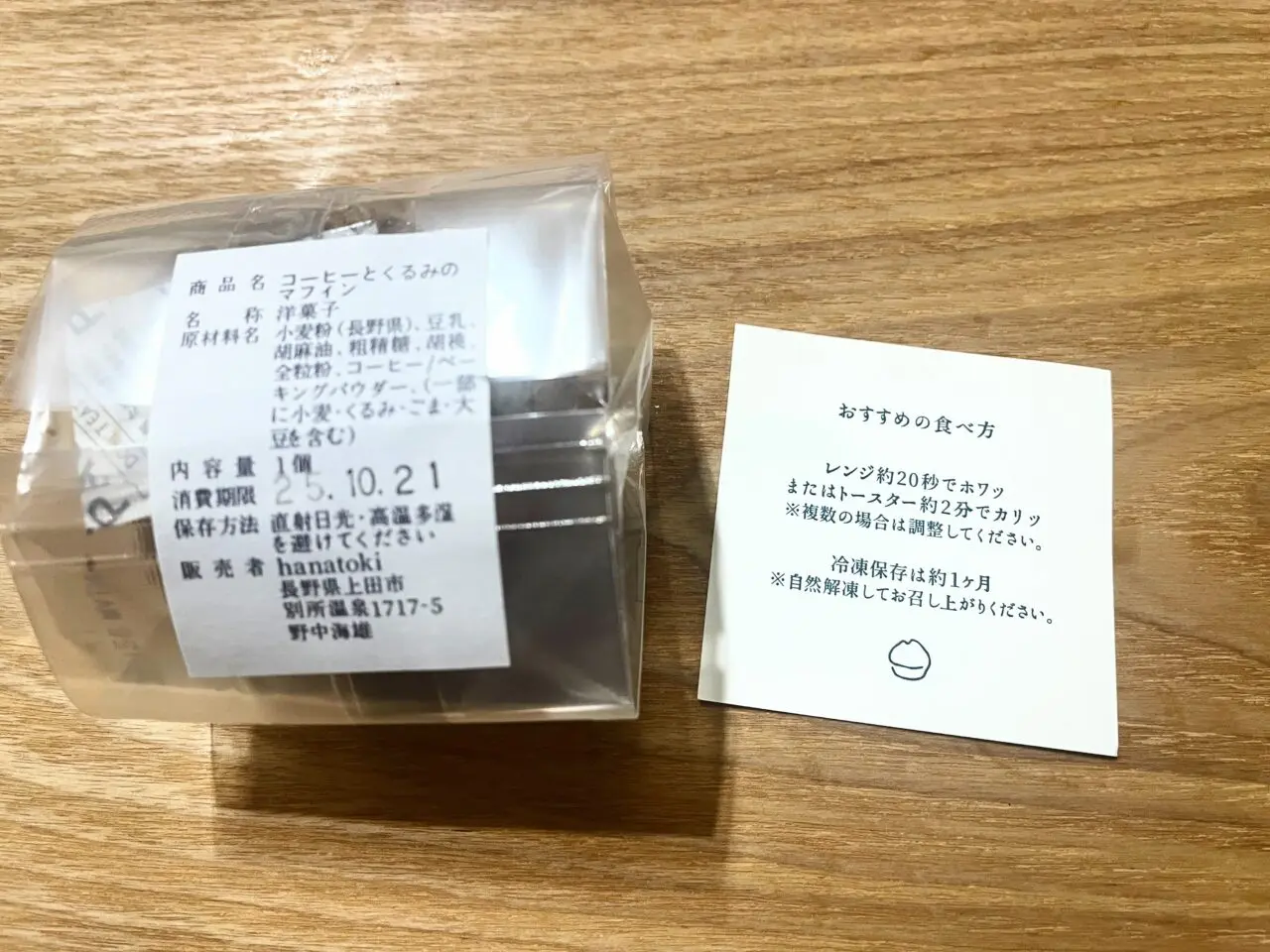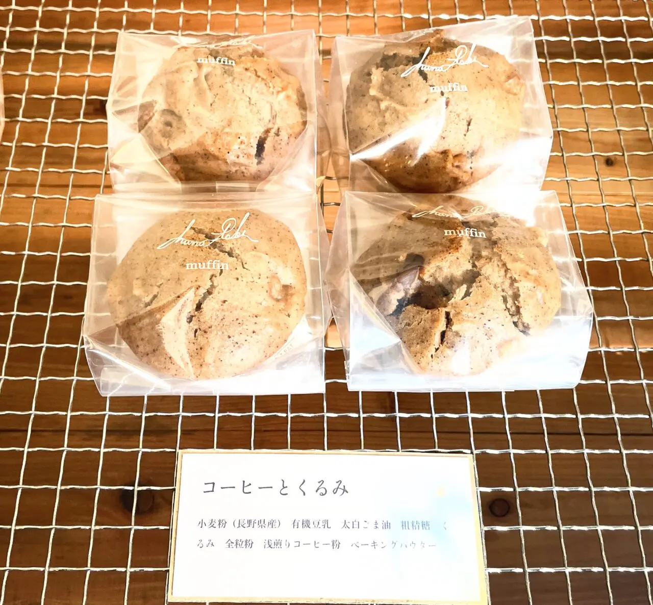 コーヒーとくるみのマフィンです。そのほかにプレーンがあり3種類とも卵乳製品不使用でした。