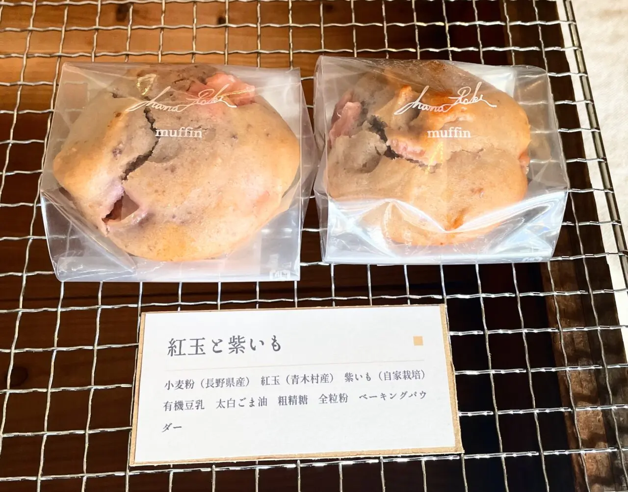 基本の材料は長野県産の小麦粉、全粒粉、有機豆乳、素精糖、太白ごま油、ベーキングパウダー(アルミニウムフリー)を使用しています。材料はできるだけ有機のもの、地場産のものを使用、バター、卵などの動物性食品を使わずに作りました。※一部を除きます。