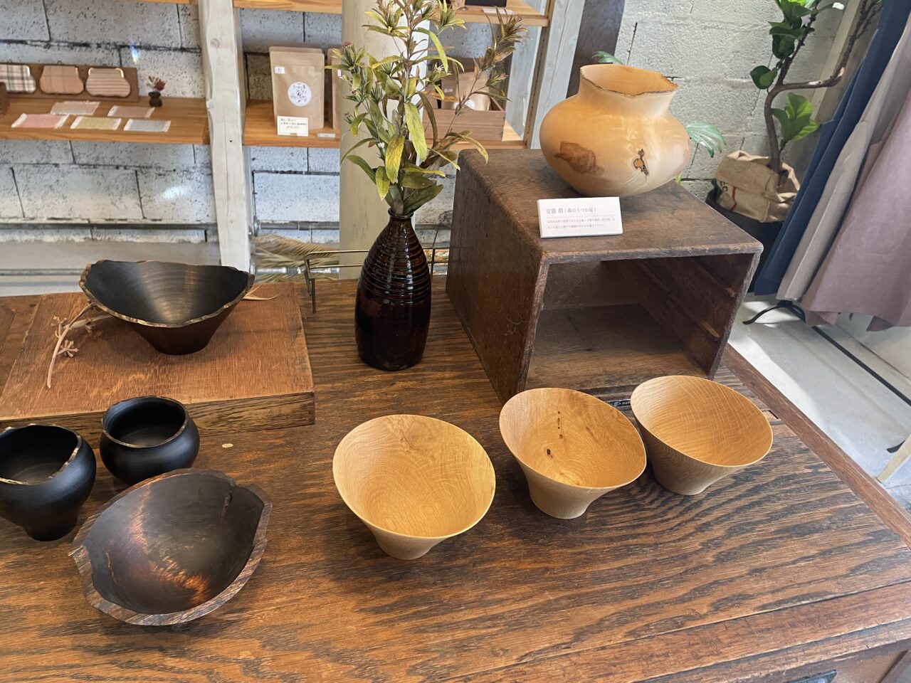 雰囲気のある器や雑貨が並ぶ店内です。