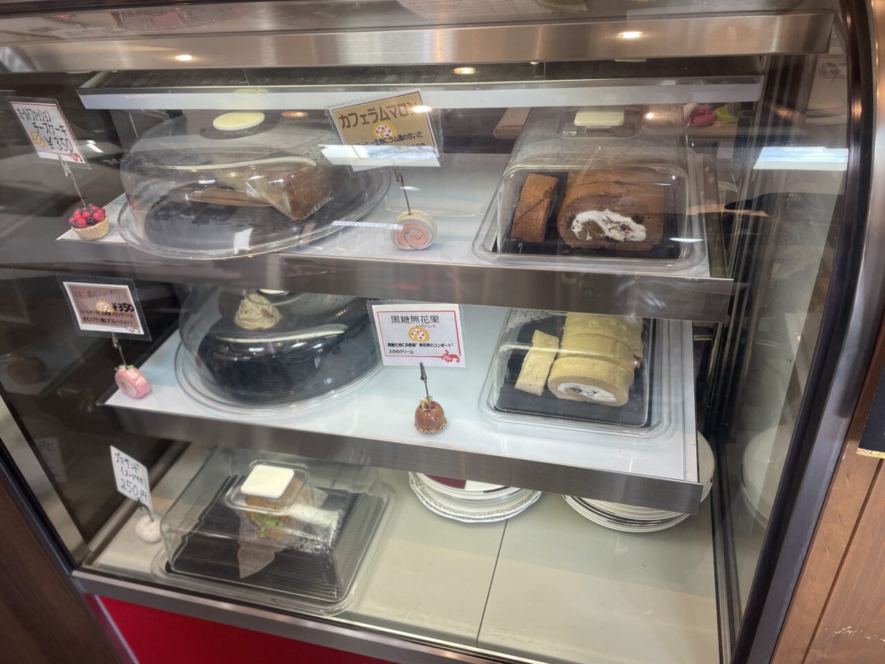 (右側)ロールケーキはカフェラムマロンと黒糖無花果があります。(左側)オールドファッションチーズケーキとロールモンブランとゴマサンドです。