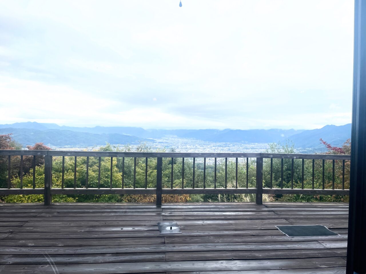 小雨の天気の悪い日でも、素敵な景色でした。晴れていたら、もっとはっきりと上田市市街や北アルプスが一望できるので絵画のような風景ですね。