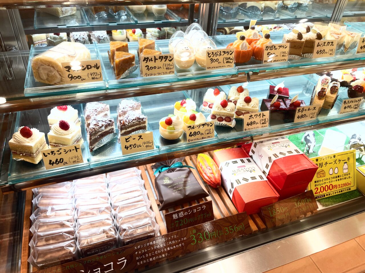 ショーケースにはかぼちゃやりんご、栗など、秋の味覚のスイーツも並んでいます。