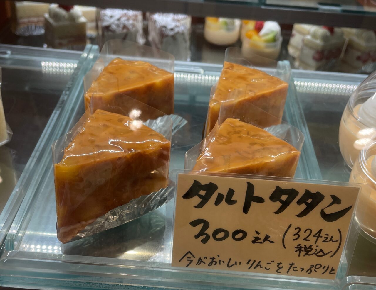 タルトタタンは収穫したリンゴをスタッフみんなで皮剥き作業。カットしたものをバターと砂糖でキャラメリゼして、風味豊かに仕上げられています。タルト生地の上にたっぷり乗せてからカット、お手頃価格で販売されています。