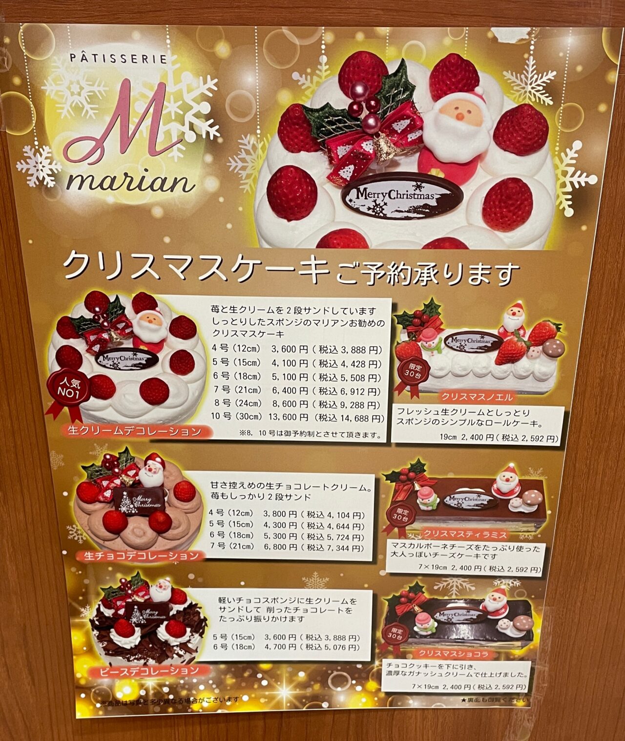 【上田市】上田原にある洋菓子店マリアンのクリスマスケーキ予約受付が始まりました。
