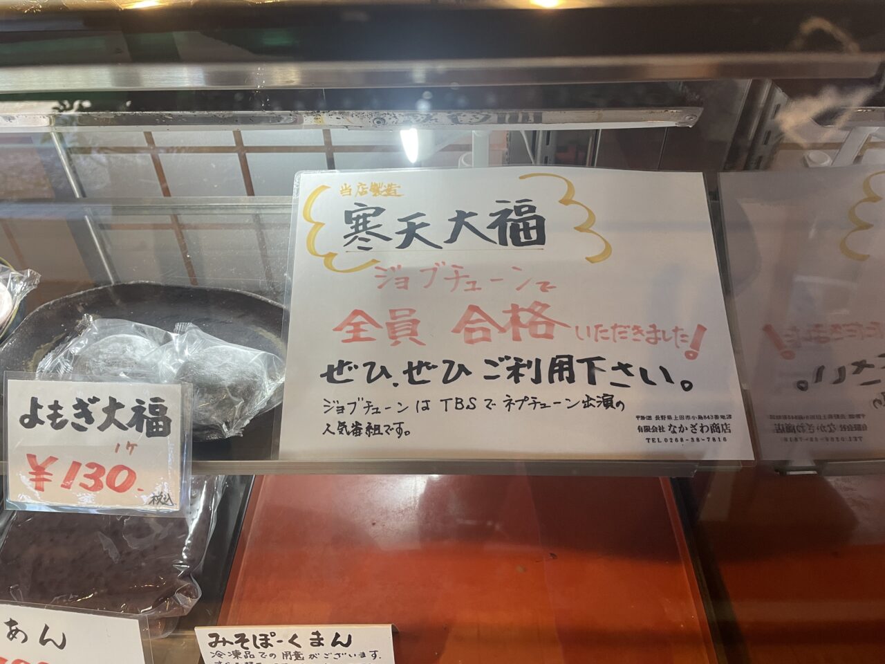 【上田市】小島にある有限会社なかざわ商店は大福の中に寒天を混ぜてあるので食物繊維も摂れてすぐに食べられない場合でもやわらかいです。