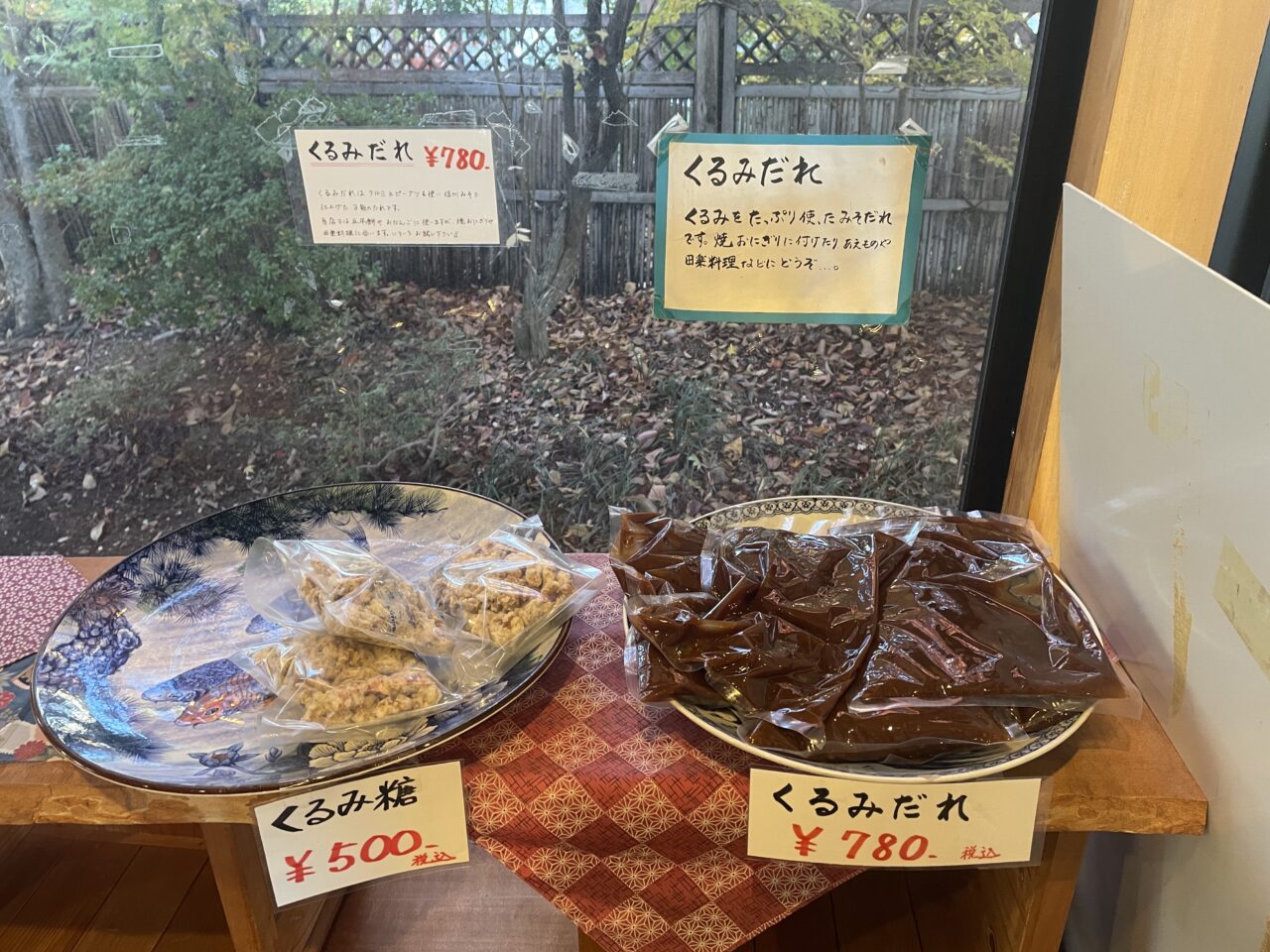 くるみをたっぷり使った味噌だれやくるみ糖があります。