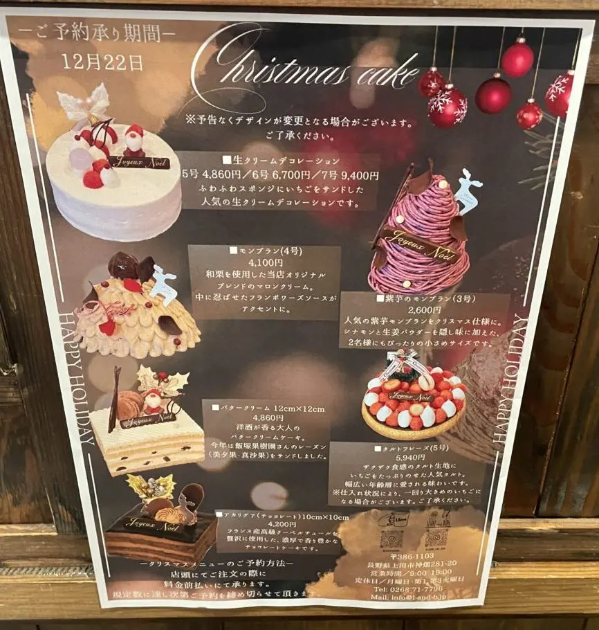 クリスマスケーキの予約が始まっています。11月中のご予約で10%OFFだそうです。