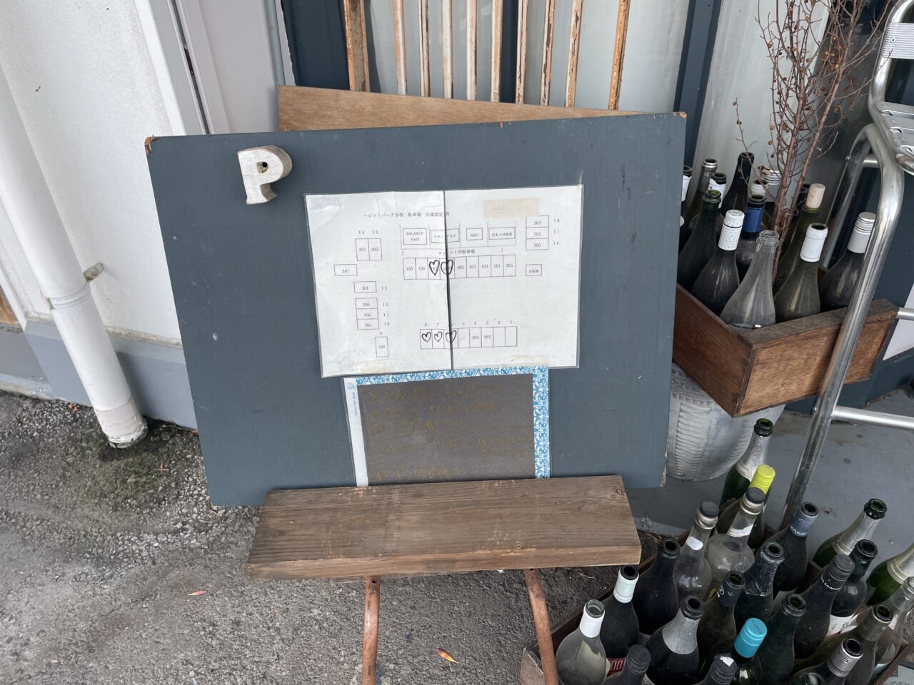 お店の前の駐車場はテナント共有ですが、場所が決まっているので駐車場の場所が書かれたボードがお店の前にあります。