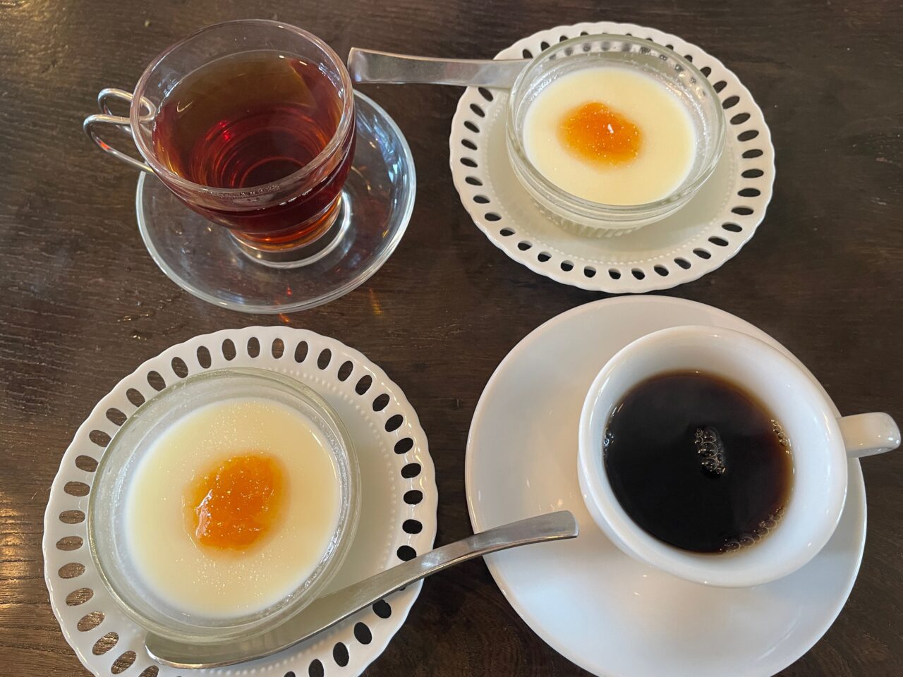 デザートは杏ジャムとミルクプリンです。杏の甘酸っぱさとミルクのまろやかなやさしい味わいがマッチしてコーヒーにもハーブティーにも合うデザートでした。ハーブティーは紅茶にミントが入ったハーブティーです。美味しくてヘルシーな一皿一皿どれも魅力が違い、食べ終わってもお得感のあるセットでした。帰り際、「クリスマスやお正月のオードブルの予約も承っています」と店員さんが皆さんにお声がけしていました。気になった方は足を運んでみてはいかがでしょうか