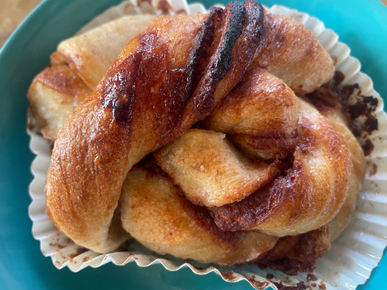 北欧シナモンロールです。オーガニックにシナモンとオーガニックのカルダモンとソイレブール(豆乳バター)と有機砂糖を合わせたペーストが生地に練り込まれこんがり焼いてあるので香ばしく美味しいパンです。